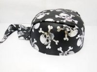 Pirate Scarf Hat, Black with Silver Skulls (1pc)