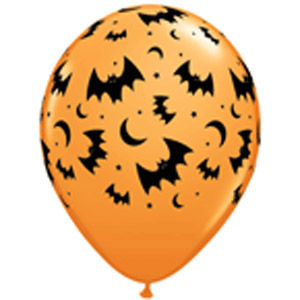 Bats and Moons 28cm Orange and Black Latex Balloon (5pc)