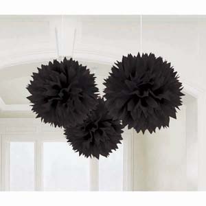 Fluffy Hanging Decoration Black (40cm) Pom Pom – Pack of 3