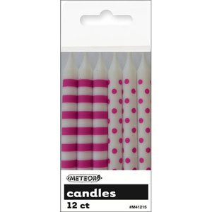 Candles Dots & Stripes Hot Pink – Pack of 12