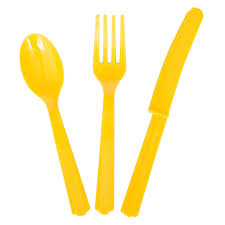 Cutlery Set – Yellow. Includes 6 x Knives/ 6 x Forks/ 6 x Spoons. Each plastic set are washable and reusable. (18pc)