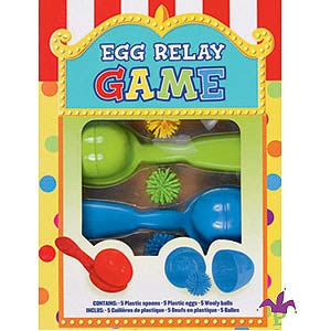Game Egg Relay Contains 5 Plastic Spoons, 5 Plastic Eggs, 5 Wooly Balls. – Each
