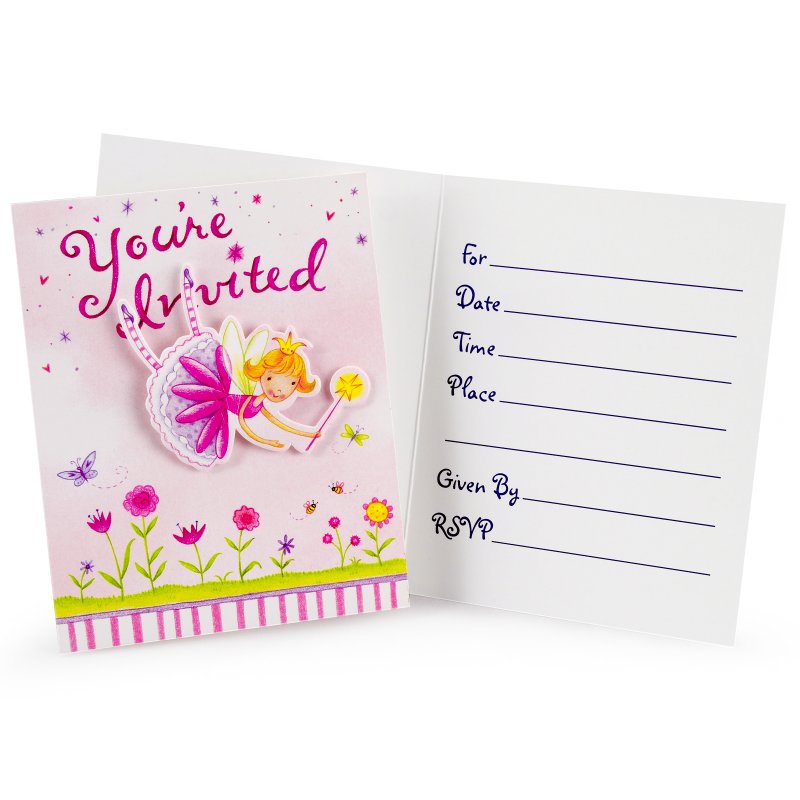 Garden Fairy Party Invitations. Package includes 8 invitations with envelopes