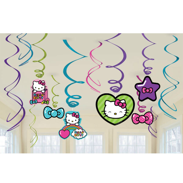 Hello Kitty Rainbow Hanging Swirls (Foil Swirls with Cutouts are 60cm Long, Swirls only are 45cm Long) Pack of 12