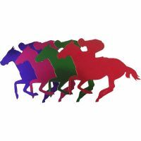 Cutouts 100mm Horse Rider Multi Double sided metallic finish – Pack of 12. Hang from ceiling or stick on wall. Widely used as decorative piece for Melbourne Cup festivities.