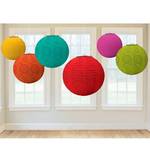 Lanterns Fiesta Paper Value Pack, Red, Orange, Yellow, Turquoise, Green, Purple (1 x 30cm, 1 x 25cm, 2 x 19cm & 2 x 14cm) – Pack of 6