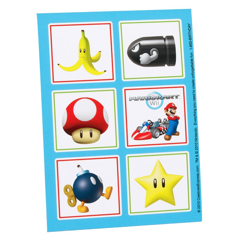Includes 4 Sticker Sheets in the Super Mario Kart birthday party theme