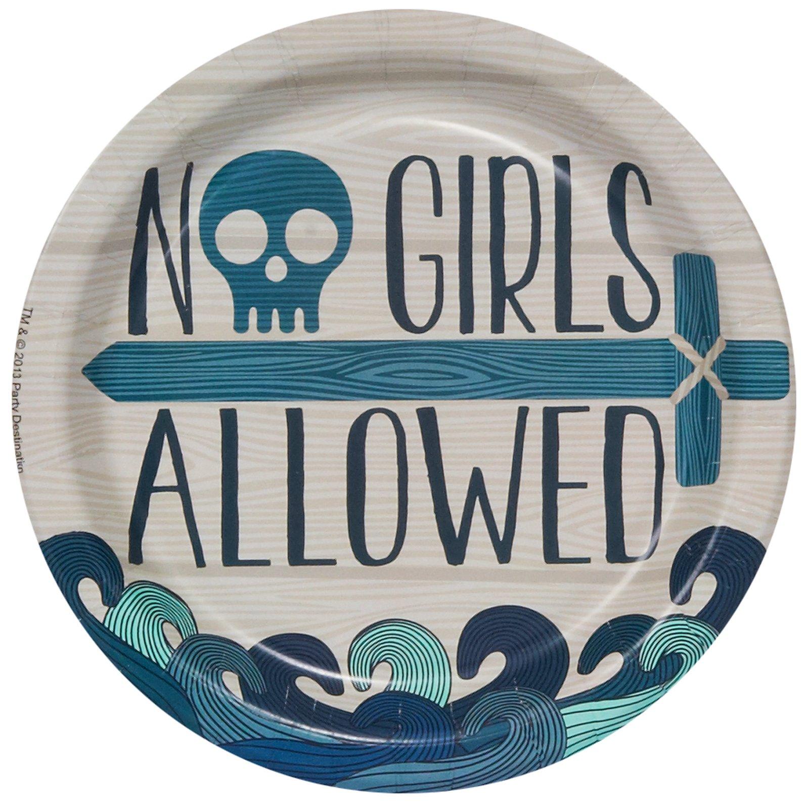 Pirate Boys Club – No Girls Allowed Dessert Plates. Each paper plate is approx 18cm wide (8pc)
