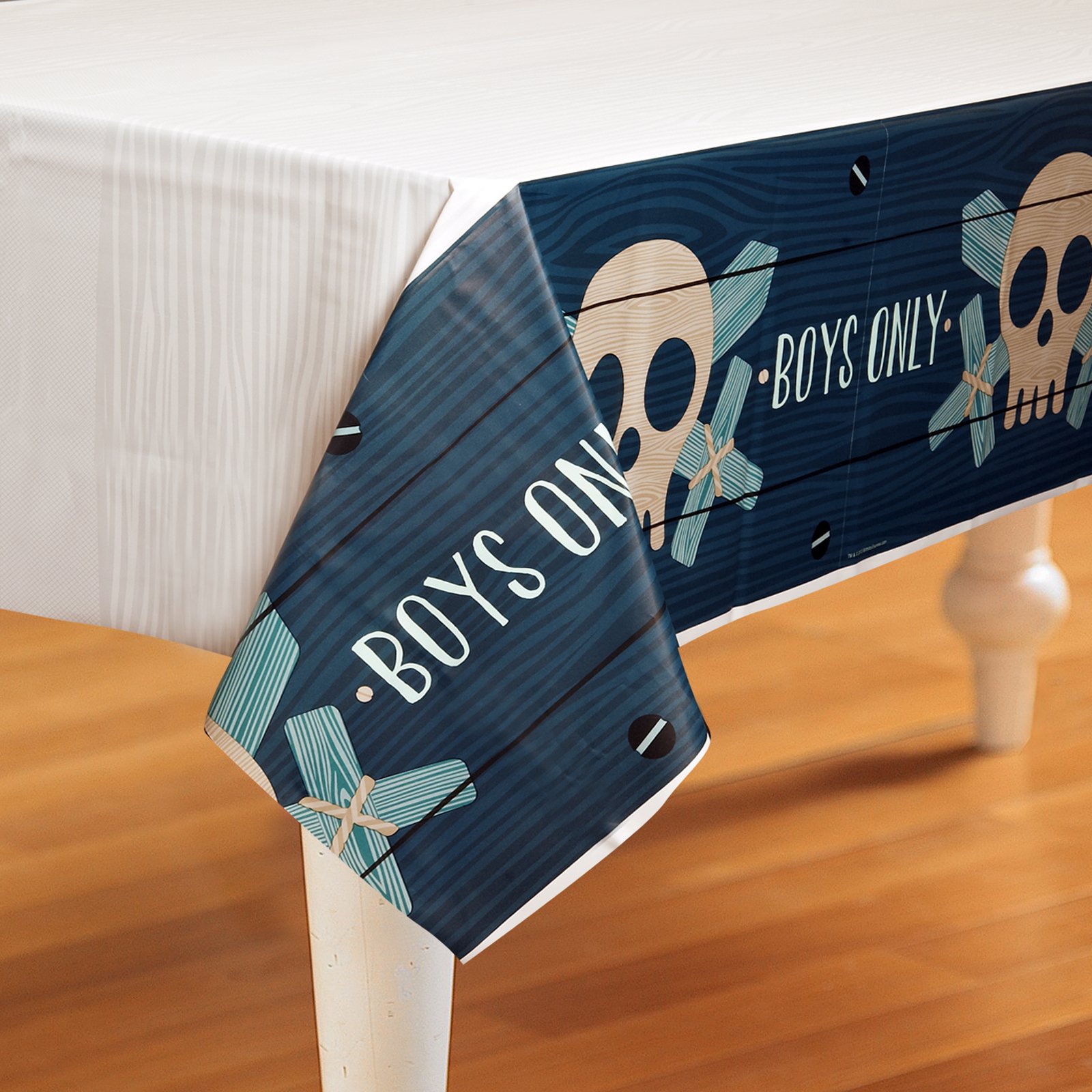 Pirate Boys Club – No Girls Allowed Tablecover. Each plastic tablecover is approx 137cm wide x 274 long (1pc)