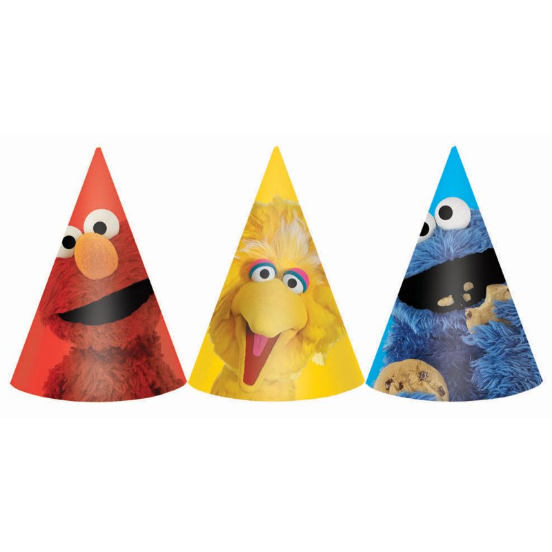 Sesame Street Party – Assorted Characters Cone Hats. Each cardboard hat comes with elastic Chin Straps (8pc)