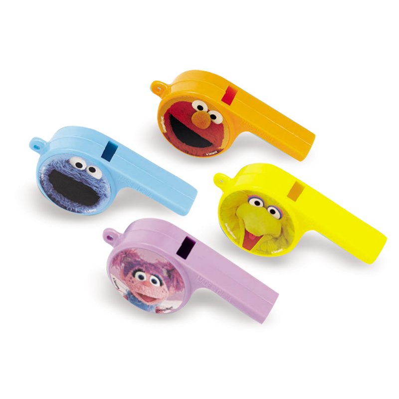 Package includes (4) Sesame Street whistle in assorted varieties. Ideal gift, prize or put them in your favour box . Made of plastic.
