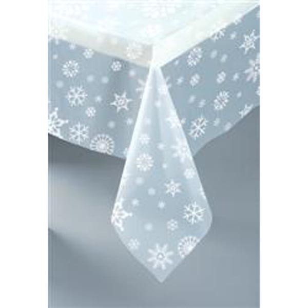 Snowflakes Clear Tablecover, each measures 135cm x 270cm – team it up with a solid colour paper tablecover from our range(1pc)