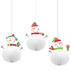 Hanging Decoration Snowman with 3D Honeycomb Bodies (20.3cm) – Pack of 3