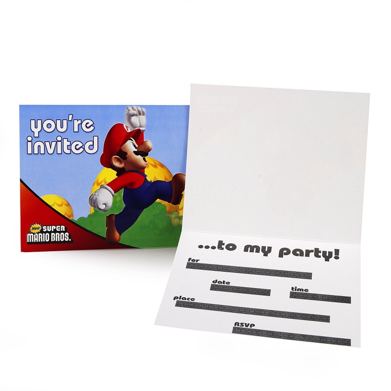 Super Mario Bros Invitations. Package includes 8 invitations with envelopes