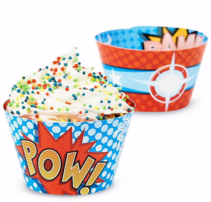 Create some impact for your superhero party with these great cupcake wrappers. Includes: (12) themed reversible paper cupcake wrappers that feature a different pattern printed on each side. Some assembly required. Do not bake in oven. Does not include cupcake. Measures 5cm H x 7.5cm W